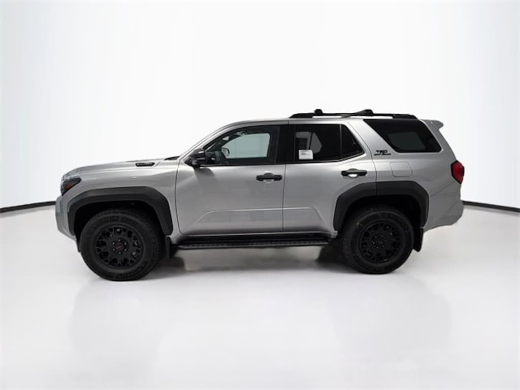 - Black honeycomb-style grille, mirror caps, door handles and overfenders; color-keyed rear spoiler; black "trd off road" and "4runner" badges.