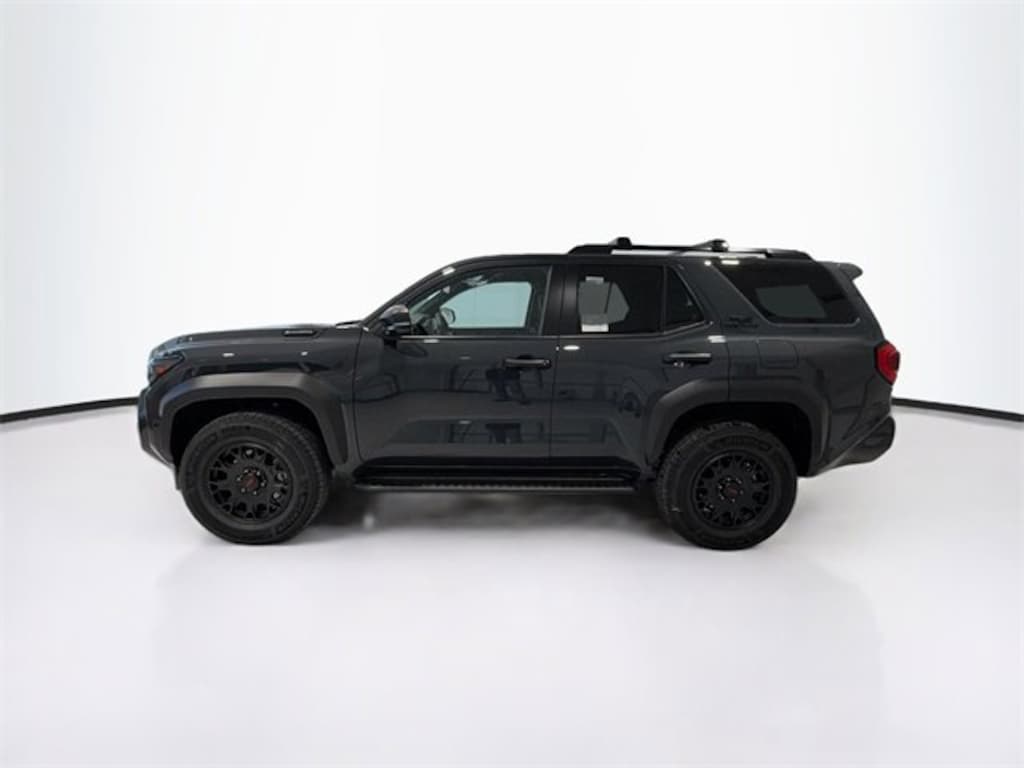 - Black honeycomb-style grille, mirror caps, door handles and overfenders; color-keyed rear spoiler; black "trd off road" and "4runner" badges.