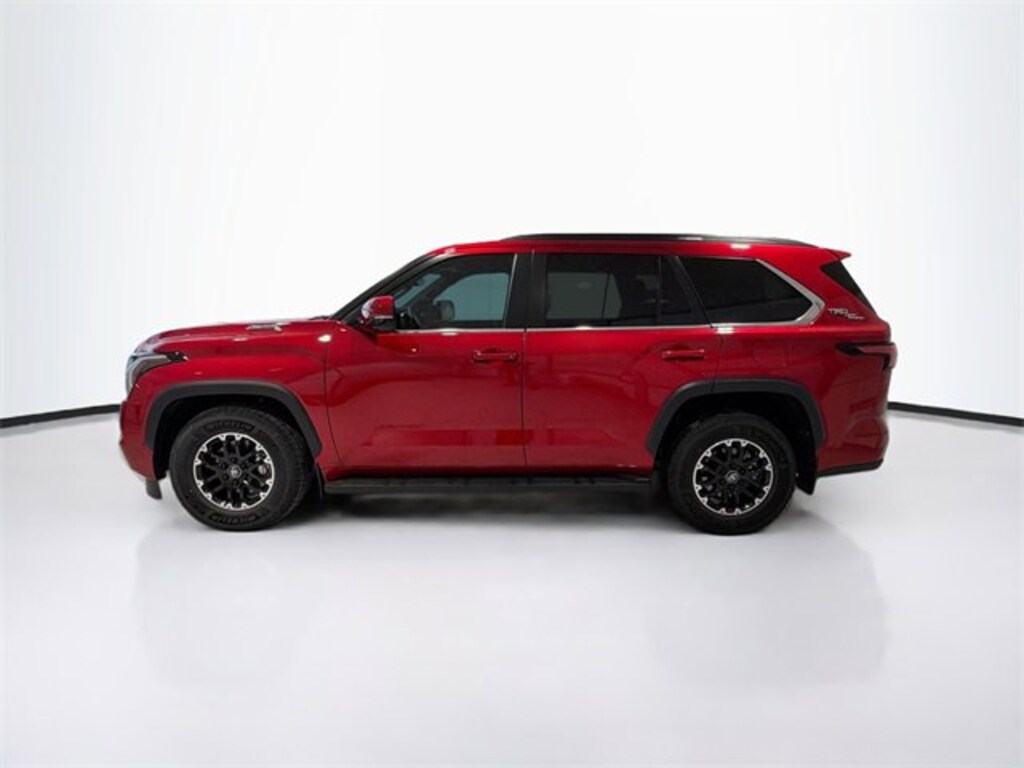 Red 2026 Toyota Sequoia 4WD 10-Speed Automatic V6 Hybrid 4D Sport Utility, V6 Hybrid, 10-Speed Automatic, 4WD, Red, Blk Fabric, Aluminum Sport Pedals, Crawl Control (CRAWL), Downhill Assist Control (DAC), Electronically-Controlled Locking Rear Differential, Exterior Parking Camera Rear, Multi-Terrain Back Monitor (MTM), Multi-Terrain Select (MTS), Off-Road Suspension with Bilstein Shocks, Power moonroof, TRD Leather Shift Knob, TRD OFF-ROAD Badging, TRD Off-Road Package.